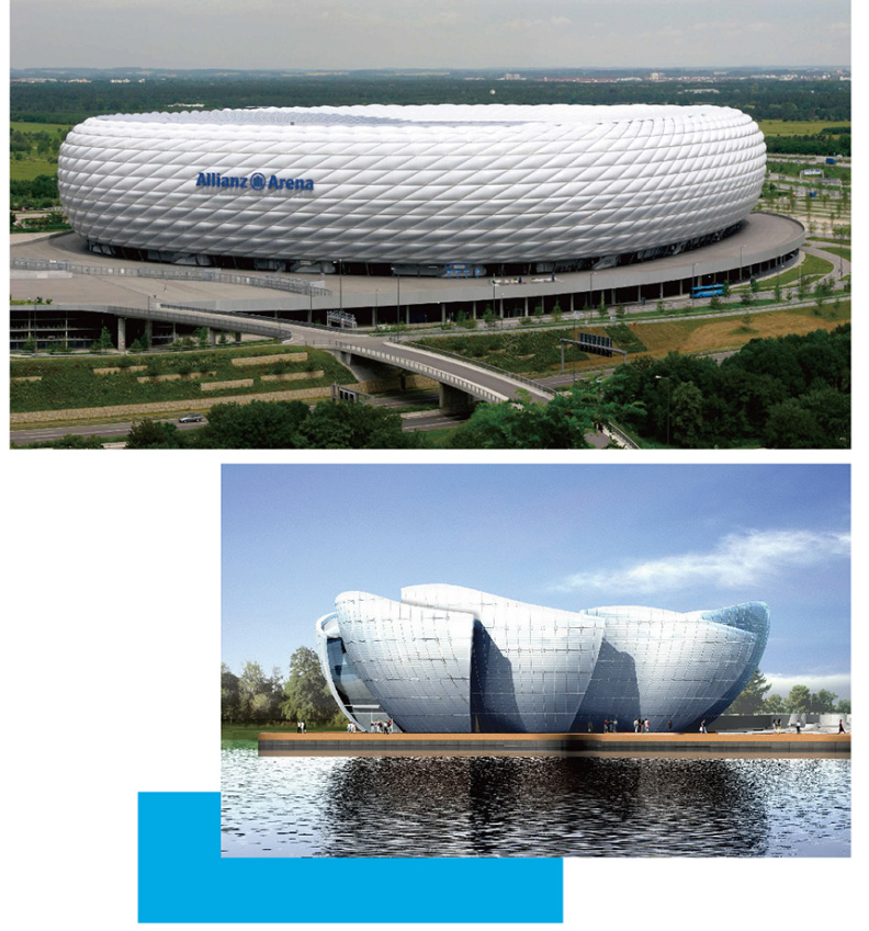建筑物外墻、梁柱、陽(yáng)臺(tái)、雨棚機(jī)場(chǎng)、車站、醫(yī)院會(huì)議廳、歌劇院、體育場(chǎng)館、接待大堂等等高層建筑物。