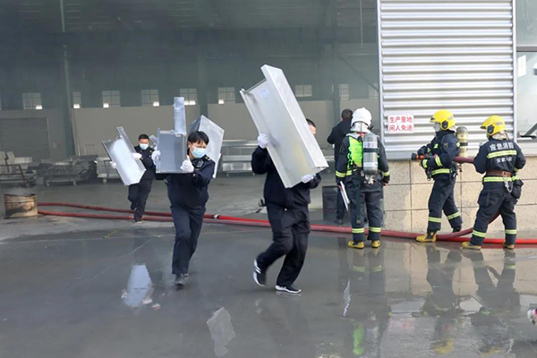 演練當(dāng)天,由安徽鑫翊新材料有限公司企業(yè)立即啟動(dòng)《安徽鑫翊新材料有限公司綜合應(yīng)急預(yù)案》,同時(shí)攜帶救援滅火設(shè)備開展自救。